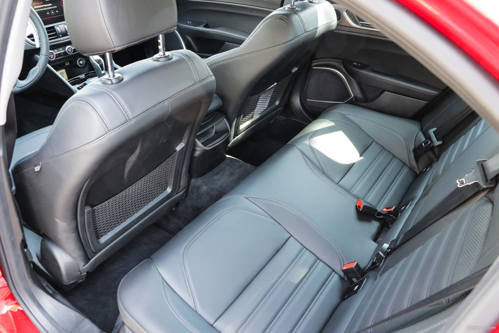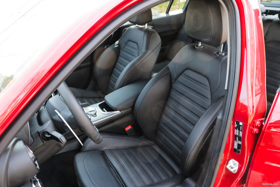 Kuskin istuin henkii autourheilun DNA:ta, sillä penkki on varsin tiiviiksi veistetty. Leveäselkäiselle penkki on hieman ahdas, vaikka sivuttaistukia saakin säädettyä hieman leveyssuunnassa. Ne toki tarjoavat erinomaisen sivuttaistuen, kun Giuliaa ohjastetaan Alppien Passo Stelvion mutkaisia tieosuuksia.