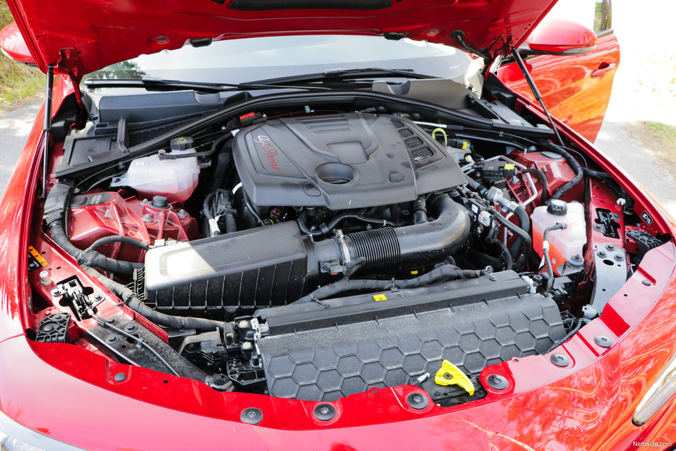 Hienostuneen ja toimivan ohjauksen kaveriksi on toki laitettu moottori, joka ei juuri jätä toivomisen varaa. Giuliaan on tarjolla pari kaksi moottoria, joista on kehitelty yhteensä kuusi eri tehoversiota.