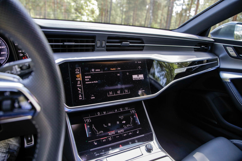 Mutta kuten todettua, A7:n parhaat ominaisuudet ovat muualla kuin raa’assa suorituskyvyssä. Audi on mukava ja pehmeä kuin valtamerilaiva. Ohjaamo on tarkasti viimeistelty ja keskikonsolin näyttö on muovattu näyttäväksi kokonaisuudeksi. Samaa linjaa jatkaa mittaristo, joka on kokonaan digitaalinen.