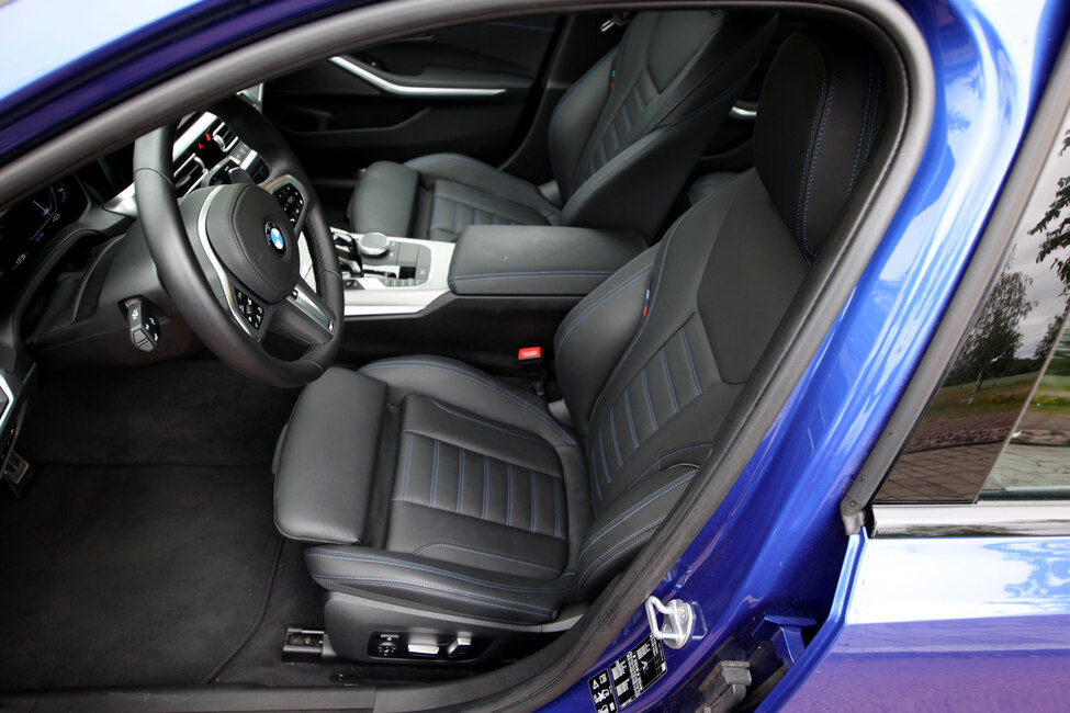 Koeajoauton M-Sport-varustepaketti tuo mukanaan muun muassa erittäin hyvät urheiluistuimet ja sporttisen kohtuullisen pienikehäisen ja ilahduttavan suuren otepaksuuden ansioista tukevan otteen tarjoavan ohjauspyörän.