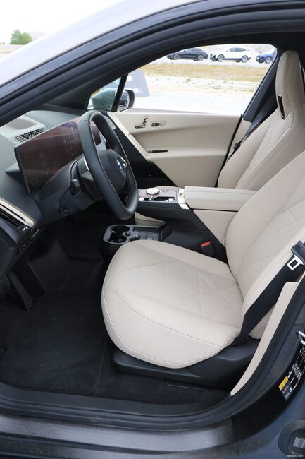 BMW on saanut perusmallien iX:iä leimannutta pehmeyttä hieman suitsittua M-osaston voimin, mutta onneksi autosta ei ole tullut vieläkään kivirekeä. Se sopii hyvin tämän tyyppiseen autoon.