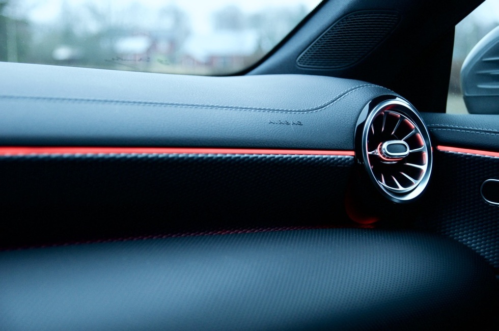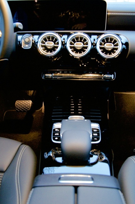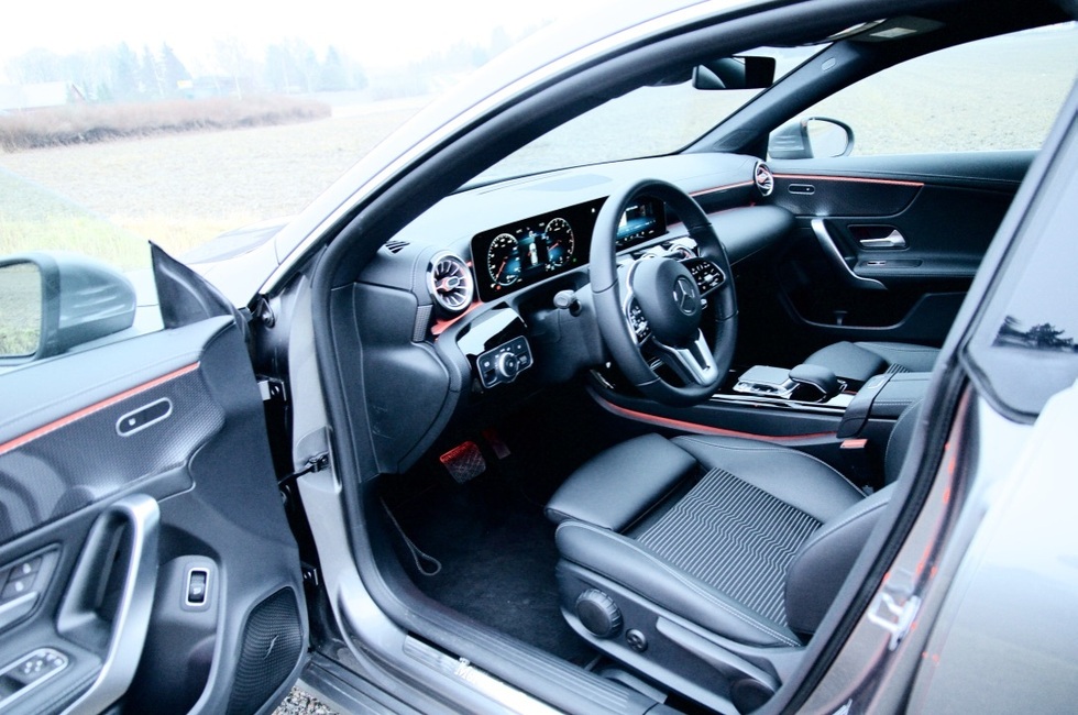 CLA on vakionakin hyvin varustettu. Mallistoja on kolme, Business Progressive, Business AMG ja AMG. Koeajoyksilössä sisätilojen tyylikkyys on huomiota herättävä. Linjakkuutta alleviivaa suuri, yhtenäinen HD-näyttö jossa vasemmassa laidassa on mittaristo, ja oikeassa laidassa kosketuksella toimiva medianäyttö. Näyttöä ohjataan myös keskikonsolista löytyvästä touch padista, jonka käyttö on varsin intuitiivista. Näytön sisällön ja ulkonäön voi yksilöidä mieleisekseen ja yksilöllisyyttä lisää myös saatavilla oleva sisätilan tunnelmavalaistus ovipaneeleissa, keskikonsolissa ja kojelaudassa. Räväkkyyttä tuo jo Mersulle ennestään tutut pyöreät ilmastointiaukot. Istuimille löytyy runsaasti säätömahdollisuuksia mutta antoivat kovahkon tunnelman massaltaan alimittaiselle koejajajalle.