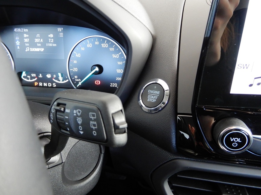 EcoSportissa on myös avaimeton järjestelmä, jonka itse olen ainakin kokenut erittäin hyödylliseksi. Avaimet pysyvät laukussa tai taskussa tallessa eikä niitä tarvitse erikseen etsiä, kun haluaa lähteä liikkeelle. Lisäksi auton käynnistys on helppoa: jarru pohjaan, painaa käynnistysnappia ja auto on käynnissä. Tämäkin on yksi pieni yksityiskohta, joka ei pelkästään tee ajosta helpompaa, vaan saa auton vaikuttamaan arvokkaalta.