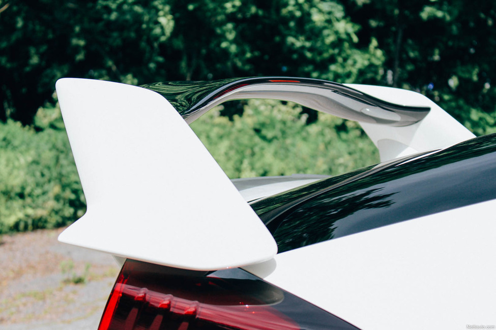 Type R:n tunnistaa edelleen itsekseen, vaikka ulkokuorta onkin veistelty uusiksi. Perän ilmettä hallitsee karmean kokoinen lintulauta, joka varmasti jakaa mielipiteet. Se ei suinkaan ole olemassa vain teinipoikien houkuttimena, vaan se palvelee tarkoitustaan downforcen suhteen. Ilme lepää myös kookkaiden vanteiden ja aggressiivisesti muotoiltujen puskurien varassa.