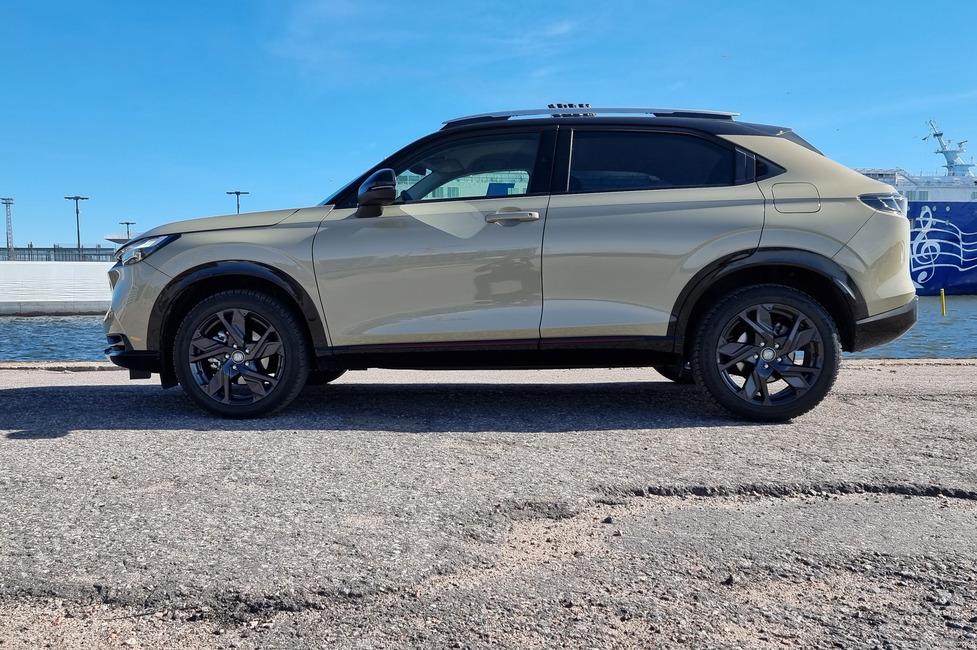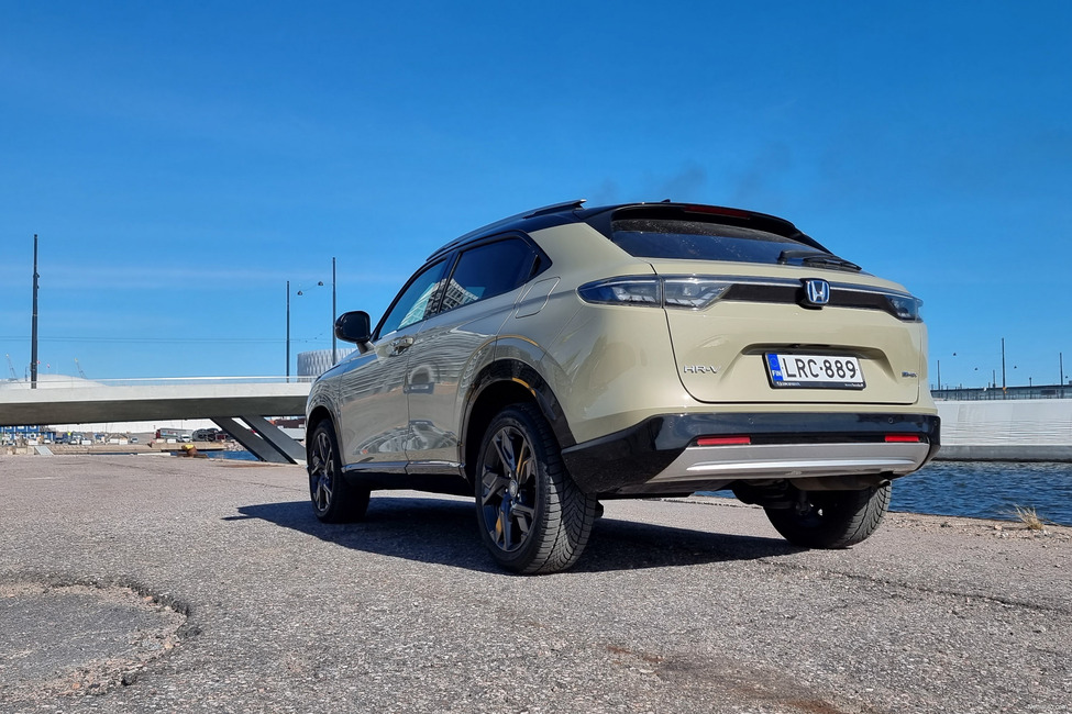 Tiloista auton ulkoiseen olemukseen, jota voi kuvailla varsin onnistuneeksi ja hyvällä tavalla kilpailijoista erottuvaksi. Vahva keula, coupémainen sivuprofiili. Olemus luo tunnelman aiempaa isommasta autosta. Yllättävää on, että tämä uusi HR-V on lähes täysin samankokoinen kuin edeltäjänsä.