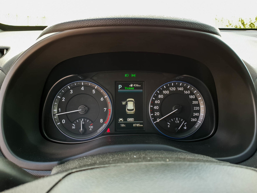 Elektroniikan kanssa Hyundai on tehnyt hyvää työtä. Siitä löytyy kaikki nykymittapuulla perusvarusteiksi luettavat asiat: adaptiivinen vakionopeudensäädin, kaistavahti, kuolleenkulmanvaroitin, parkkitutkat ja niin edelleen.