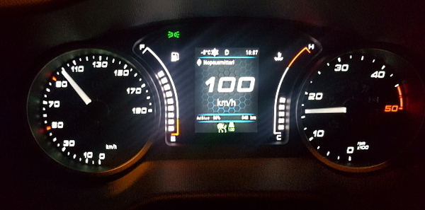 Mittaristo on perinteinen analoginen, sopivasti digitaalisuudella höystettynä. Mittarikeikkojen välissä on pieni näyttö, johon voi valita eri infotoimintoja. Ehkä käytännöllisin niistä on suurin ja selkein numeroin näkyvä nopeusnäyttö. Samaan näyttöön tulee myös vakionopeudensäätimen asetukset. Vakionopeudensäätimen ja nopeudenrajoittimen toimintojen oppiminen vie hieman aikaa ennen kuin kaikki sujuvat kivuttomasti. Mutta kun proseduuri on hanskassa, on vakionopeudensäätimen käyttö pelkkää juhlaa. Toiminnon kruunaa vielä adaptiivinen ominaisuus, eli auton nopeus säätyy edellä ajavan nopeuteen säädetyssä rajassa. Homma toimii hienosti niin moottoritieajossa kuin ruuhkaliikenteessä aina pysähdyksiin asti, jos edellä ajava näin tekee. Moottoritien rampille poistuvan, edellä ajavan autonkin Daily hylkää lähes nopeutta pudottamatta.