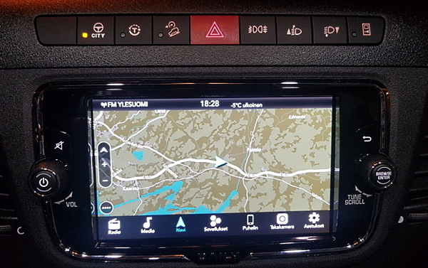 Ajonaikaiset toiminnot on sijoitettu kaikki ohjauspyörään, joten siitä ei tarvitse startin jälkeen juurikaan irrottaa. Nappeja on paljon, mutta onneksi ne ovat suuria ja pimeälläkin riittävästi valaistuja. Ratti itsessään on henkilöautoluokkaa, tukeva ja tyylikäs. Alareunakin on viistetty urheiluautomaiseen tapaan.