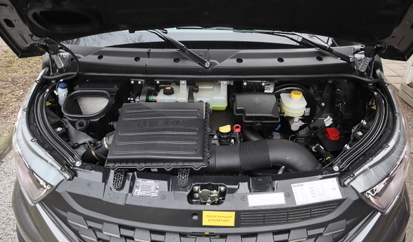 Kokonaispaino on kuitenkin ”vain” 3 500 kilogrammaa, joka mahdollistaa sen kuljettamisen B-luokan ajokortilla. Ja tietenkin se rajoittaa hyötykuorman määrää. Koeajettu Daily sisälsi myös paljon varusteita, joita tarvitaan kuorma-autoksi rekisteröitäessä (mutta se onkin sitten jo toinen juttu). Mukana olivat jo muun muassa hätäjarrutustoiminto sekä rengaspaine- ja kaistavahti. Rakenteellisesti Daily on valmis rautajousineen (lehti) ja rengastuksineen myös järeämpään kuorma-autoluokkaan.