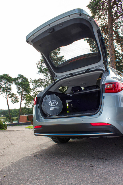 Tavaratilan pohjan kovera muotoilu paljastaa, että jotain tärkeäähän sen alle on kätketty. Tavaratilan pohjalle sijoitettu akusto pienentää Optiman entuudestaan yli 550 tavaratilaa reilulla sadalla litralla. Jäljelle jää tavaratila, joka on samaa kokoluokka kuin edellisen sukupolven hybridi-SUV:eissa, mutta selkeästi vähemmän kuin perhefarkkujen tilavuuksiin tottuneille.