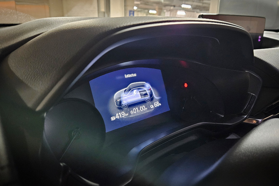 Auton saa virtaa pikalaturilla maksimissaan 36 kW teholla ja auton oma laturi on 11 kW, joten sähköä pieneen 17,8 kilowattitunnin akustoon saa ladattua nopeasti.
