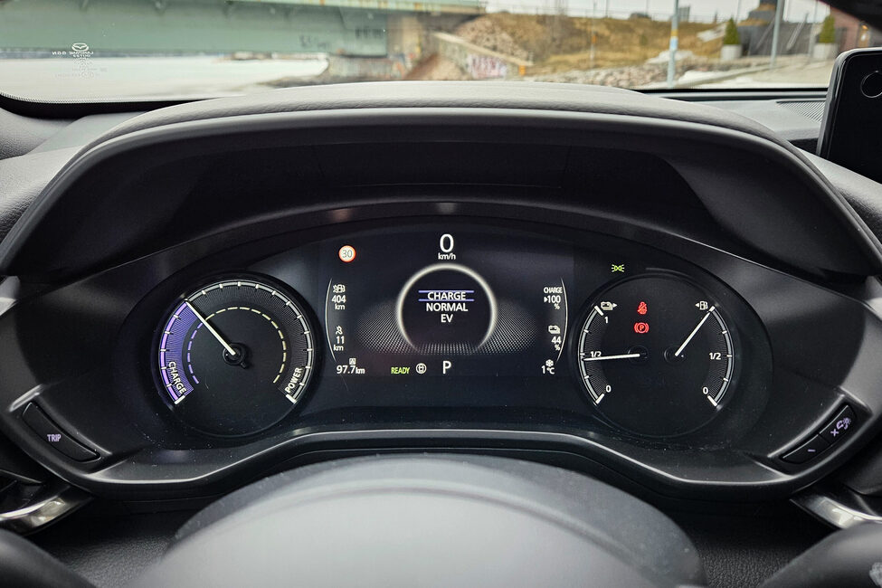 Ajaminen MX-30 R-EV:llä on hauskaa. Auto reagoi hyvin kuskin toiveisiin ja Wankelin tuo käydessään sisätiloihin tavallisuudesta poikkeavan sirisevän äänen.