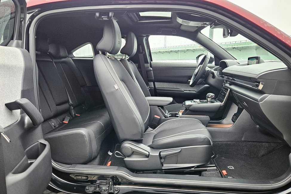 Autona MX-30 on hauskan erilainen tapaus. Takana on kaappariovet ja sisustan sekä kojelaudan muotoilu on perusmassasta poikkeavaa.