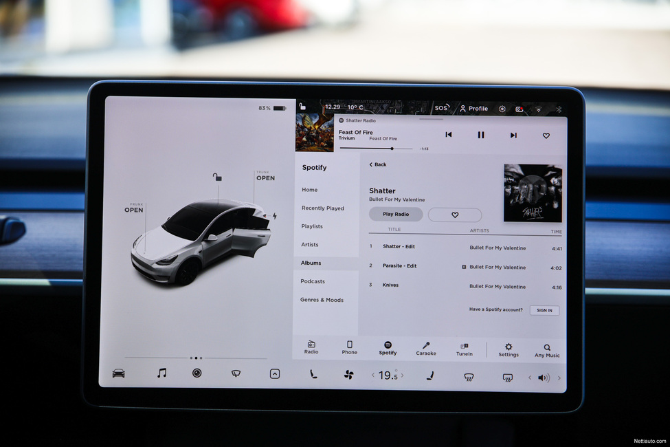 Käytännössä kaikkea auton toimintaan liittyvää hallitaan keskikonsolissa olevasta näytöstä. Se kätkee sisäänsä niin mittariston, sisäilmapuhaltimen toiminnan, äänentoiston, asetukset, hansikaslokeron avauspainikkeen ja niin edelleen. Käytännössä kosketusnäyttö pitää sisällään kaiken toiminnan.