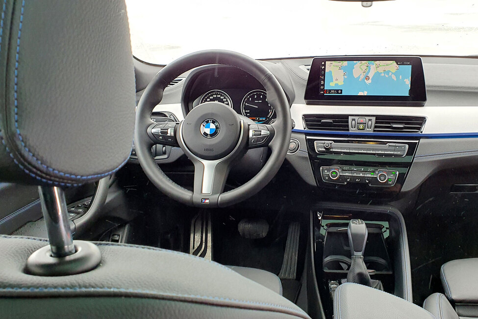 Ohjaamo on mukavan väljä myös isokokoiselle kuskille, vaikka kyseessä on kompaktin kokoinen ja näyttävän coupémaisesti muotoiltu katumaasturi. Kuten monessa muussakin sarjan koeajossa on todettu, M Sport -varustellun BMW:n sportti-istuin on huippumukava ja samalla ajoasentoa tukeva.