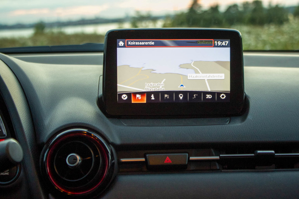 Mazdan oma keskusohjausyksikkö ja siihen liittyvä tietokone navigaattoreineen on toimiva, vaikkakin muotoilultaan melko kolkko. Plussaa kuitenkin suomenkielisestä ohjelmistosta ja navigaattorista, jotka lujittavat varmasti Mazdan asemaa suomalaisten kansanautona.