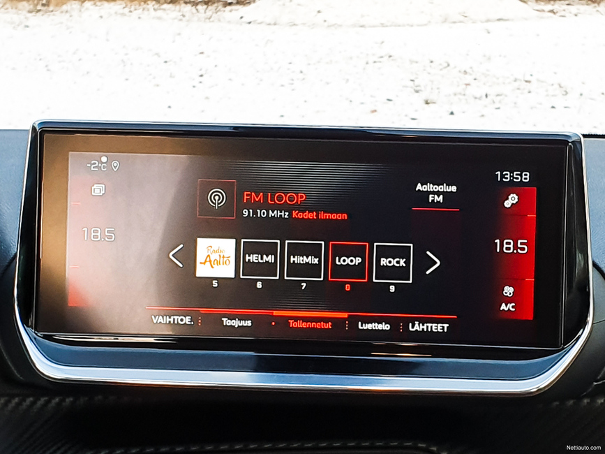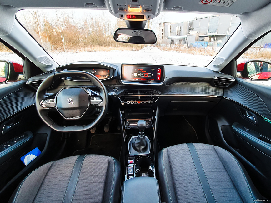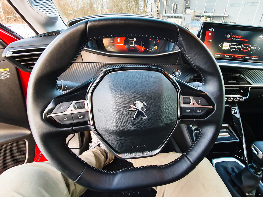 Sisustan kokonaisuutta hallitsee siis mittaristo ja keskikonsolin näyttö, joka on tuotu samalle tasolle mittariston kanssa, eli kojelaudan yläreunaan. Jokin aika sitten 208:aan lanseerattu pieni ohjauspyörä on edelleen läsnä. Mittaristoa katsellaan normaalista poiketen ratin yläpuolelta. Ratkaisu toimii ja pieni ohjauspyörä on todella näppärä käyttää.