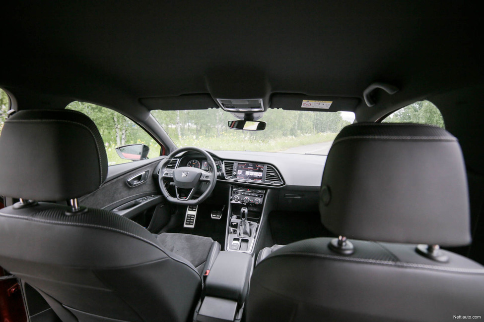 Sisätiloiltaan Leon on hyvää perustasoa, mutta Cupra-lisä toki tuo sisustaan muutamia hienoja yksityiskohtia, jotka miellyttävät silmää ja hanuria. Sporttisuutta on korostettu joka käänteessä etuistuimilla, mutta takapenkki on vastaava kuin perusmallissa, mikä on toki hyvä asia. Viisipaikkaisena säilyttäminen on ehdottomasti plussaa.