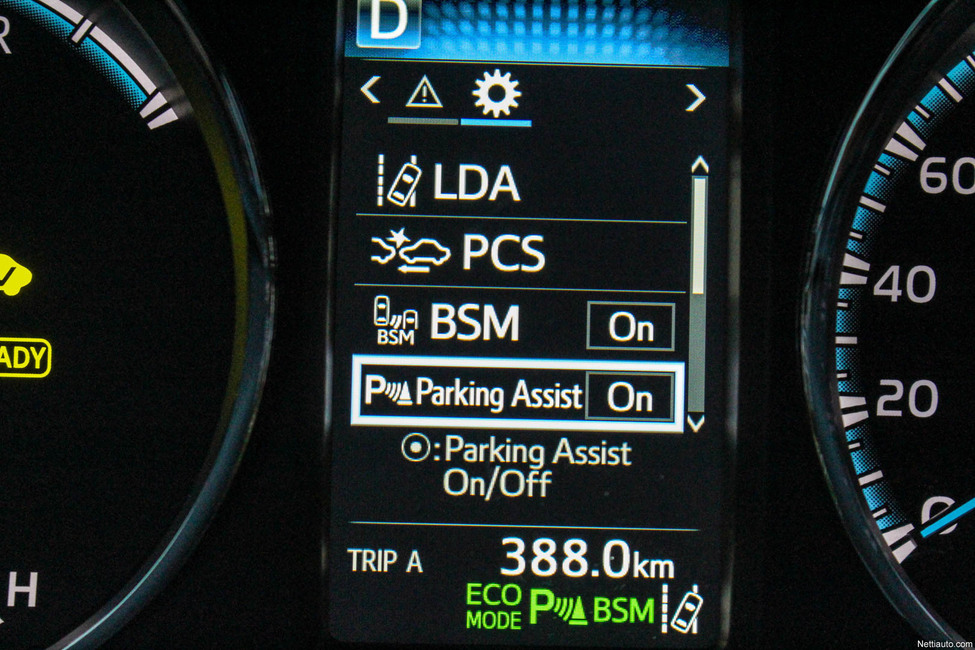 Näytöstä voi seurata mm. energian kulkua ja moottoreiden yhteistyötä. Kierroslukumittarin paikalla on taloudellisuusmittari, joka kertoo, milloin kaasupoljinta painetaan liian syvälle sekä opastaa ekologisempaan ajoon.