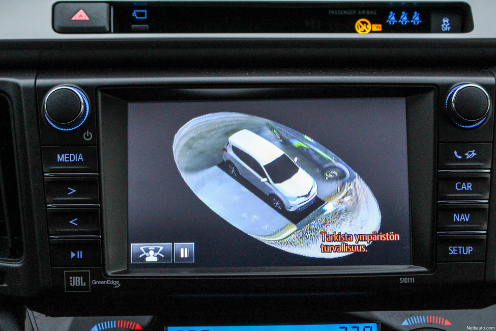 Koeajettu auto oli varustettu Premium-varustepaketilla joten mukana oli lähes kaikki kilkkeet mitä saatavilla on. 360 astetta näyttävä panoraamakamerajärjestelmä osoittautui yhdeksi hyödyllisimmistä. Systeemi aktivoituu ryömintänopeuksissa ja kamerat muodostavat 7” näytölle yhtenäisen kuvan auton ympäriltä. Tämän lisäksi jaetulle näytölle ohjataan kuvaa joko etu- tai takakamerasta, riippuen kumpaan suuntaan liikutaan.