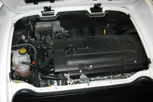 Keskikonsolissa on pienet pyöreät potikat, joilla ohjataan lisävarusteena toimitettavaa ilmastointilaitetta. Radio on kaupasta ostettua mallia ja sopii pieneen asennusaukkoon. Tavaratila on keskimoottorin takana. Se on silmämääräisesti yhden runsaankokoisen putkikassin kokoinen. Edessä ei ole lainkaan tavaratilaa, vaan koko tila on pyhitetty jäähdyttimelle ja sen putkistolle (sivuponttoonien kautta vedetty ohjaamon taakse moottorille.)