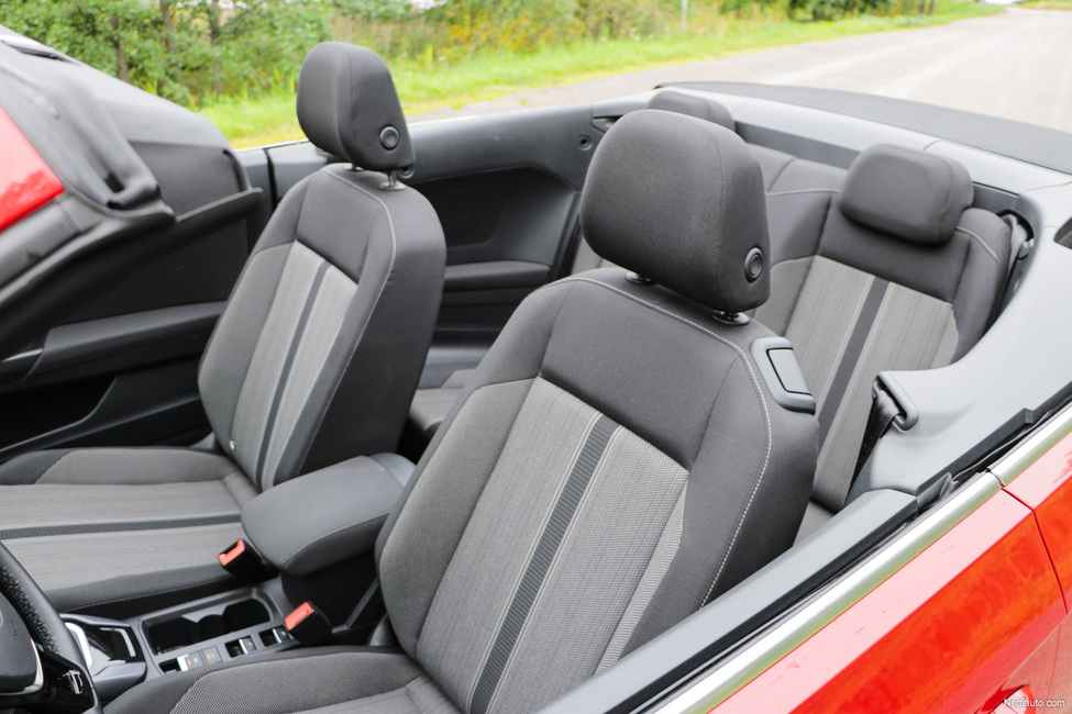 T-Rociin on saatu loihdittua varsin kelvollisen kokoiset sisätilat myös takamatkustajille. Toki takapenkille mahtuu vain kaksi kyytiläistä, mutta harvoin avomalli tarjoaa tiloja viidelle matkustajalle. Avomallin ollessa kyseessä, penkkien toivoisi olevan nahkaa. Sellaiset on toki saatavilla lisävarusteena.