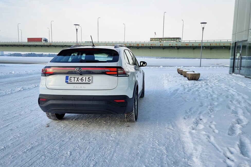 Taigon takaistuimella ei täysikasvuinen mielellään matkusta, sillä kuskin takana on ahdasta. Pienen auton perusrakenne tuntuu, vaikka Taigo näyttää jopa nykyisen Volkswagen Golfin kokoiselta. Golf on noin kolme senttiä pidempi kuin Taigo.