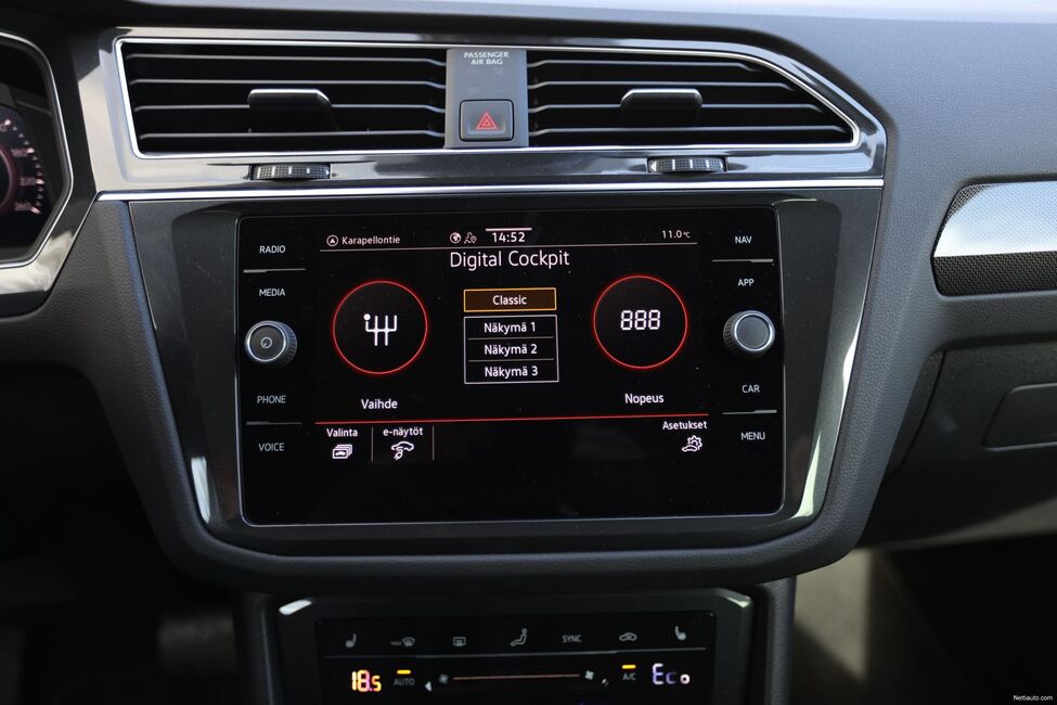Auton navigaattorin käyttäminen matkalla kuin matkalla on fiksua, sillä silloin järjestelmä pyrkii optimoimaan sähkön käytön ja kulutuksen. Jos esimerkiksi reissun loppupäässä on kaupunkiajoa, Tiguanin “aivot” säästää sähkö matkan aikana kaupunkiajoa varten.