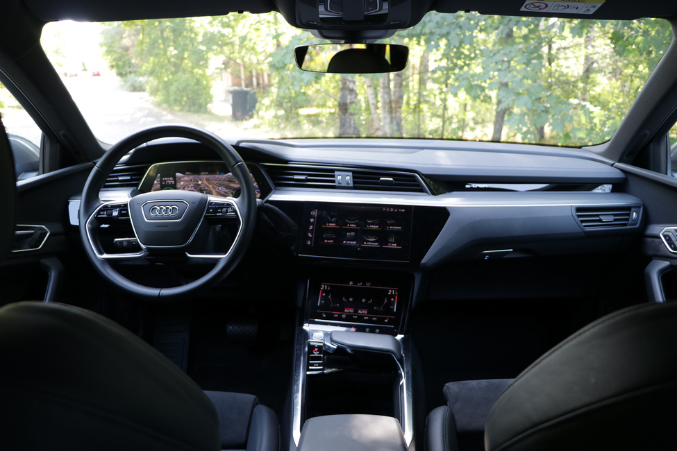 Ohjaamo on näyttävä, muttei hätkähdyttävä. Hallintalaitteet ovat vastaavia kuin monissa muissa kalliimmissa Audi-malleissa. Mittaristot ovat modernit ja näkymältään laajasti muunneltavissa. Osa näkymistä poikkeaa luonnollisesti polttomoottoriautoista, sillä sähköautoillessa on oltava jatkuvasti tietoinen akun varaustilasta.