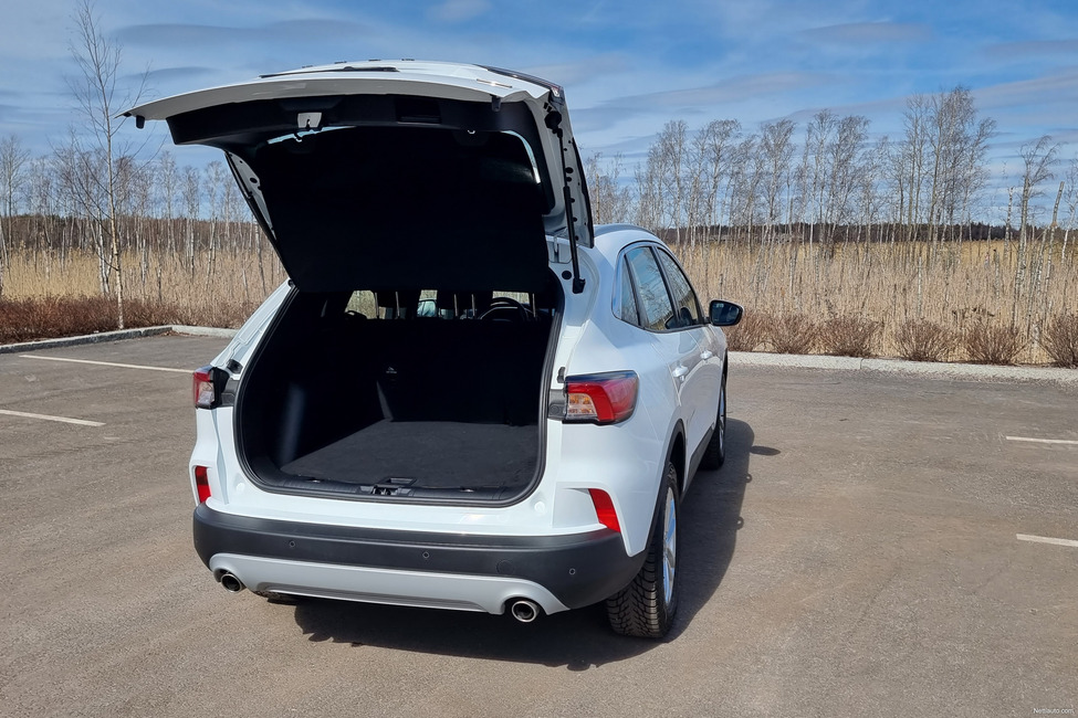 Kuga HEVin tavaratila vetää perusasennossa saman reilun 400 litraa kuin Kuga PHEV. Pohjalevyn alla mukavasti lisätilaa, jos varapyörän sijaan on käytössä paikkaussarja. Takaselkänoja laskelmalla tavaratila kasvaa jopa 1481 litraan.
