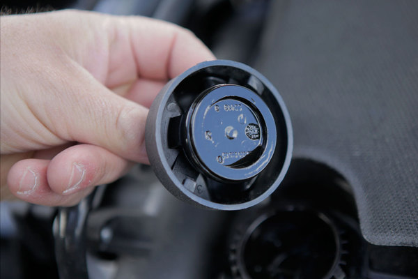 Katso jäähdyttimeen ja paisuntasäiliöön ja tarkista että siellä on vain vettä sekä jäähdytinnestettä. Neste on useimmiten joko vihreää tai punaista. Öljyä nesteen seassa ei saa olla, eli jos näkyvissä on sateenkaaren värejä, voi kysymyksessä pahimmillaan olla kallis kannentiivisteen vuoto. Kuplintaa ja pulputusta paisuntasäiliössä ei koneen käydessä saa esiintyä, joka myöskin viittaa edellä mainittuun, usein kalliiseen vikaan.
