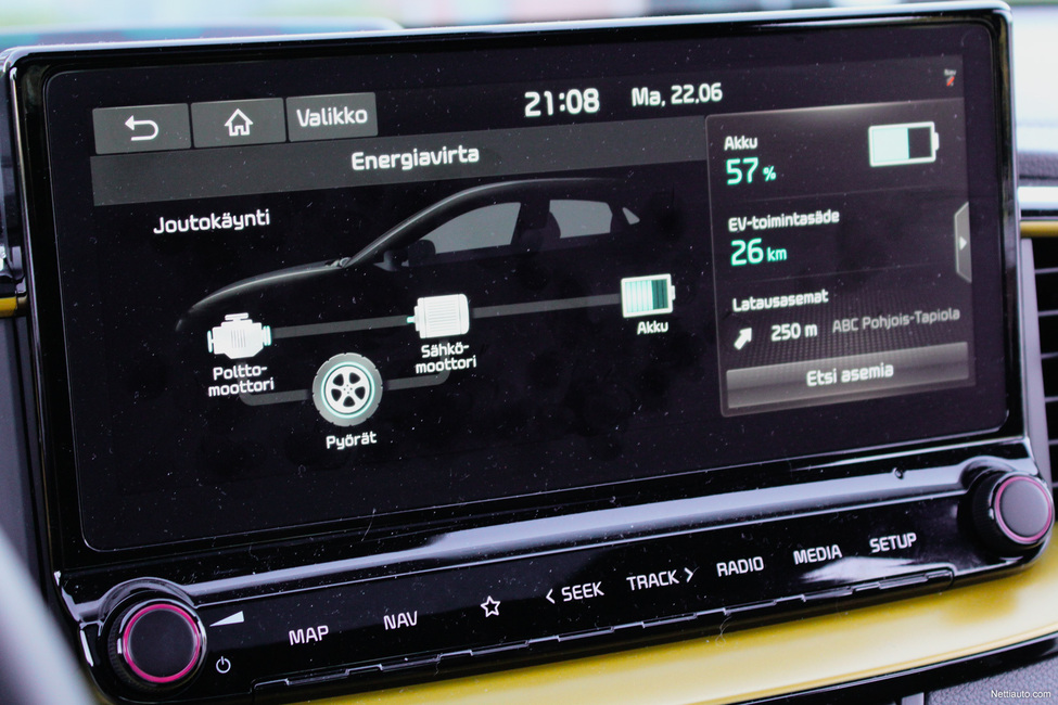 Ajossa hybridivoimalinja on huomaamaton. Moottoreiden työvuoronvaihtoa ei helpolla huomaa muusta kuin mittaristosta. Ainoastaan korkeammilla kierroksilla moottorin ääni tunkeutuu matkustamoon. 6-pykäläinen kaksoiskytkinvaihteisto hoitaa hommansa pääosin hyvin.