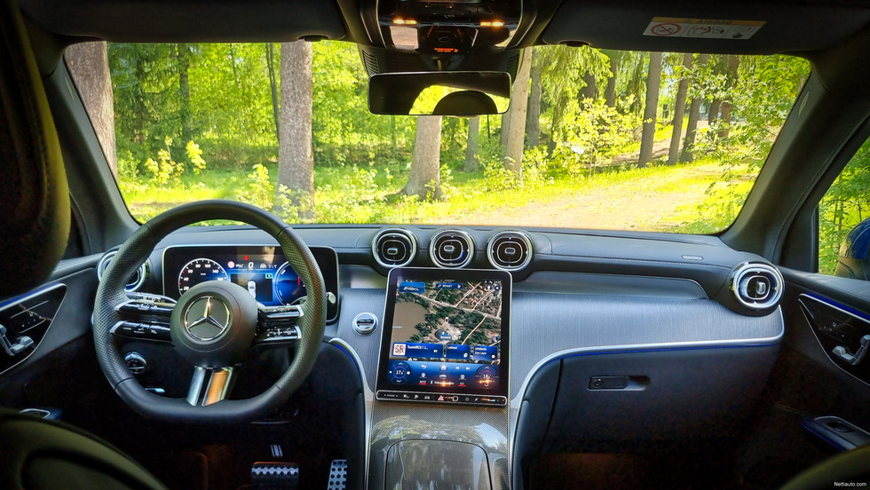 Uusi Mercedes-Benz GLC näyttää sisältä hyvin samanlaiselta kuin C-sarjan ohjaamossa. Toimintojen ja käytettävyyden osalta ohjaamosta voi lausua sanat: laadukas, tyylikäs ja toimiva.