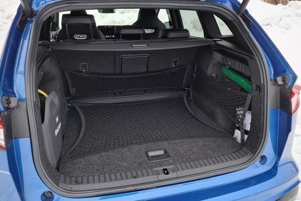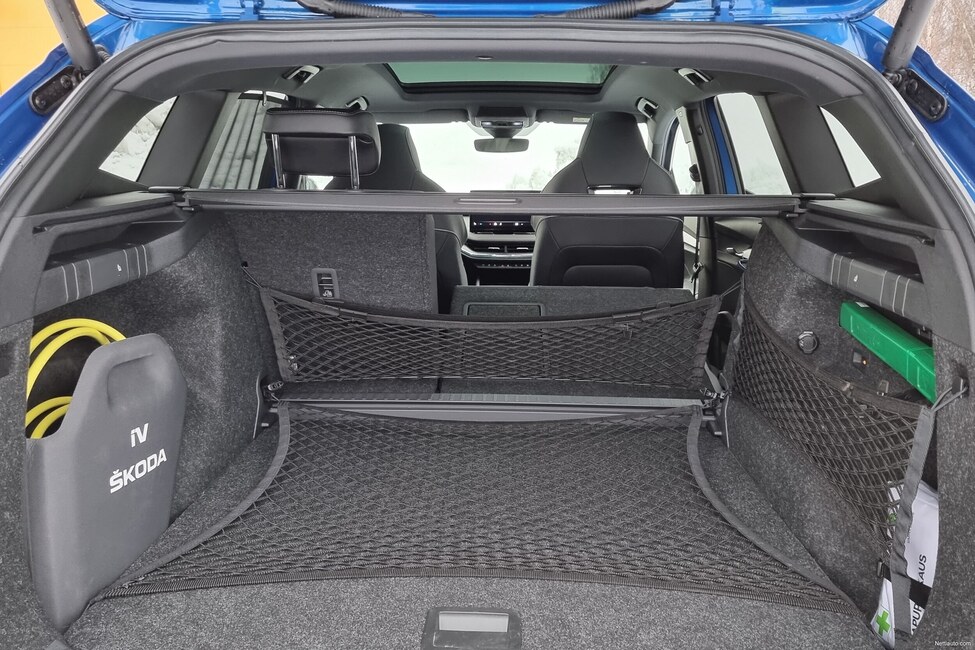 Takaistuimella on väljää eli siellä viihtyvät myös aikuiset ja tavaratila on isokokoinen sekä helposti laajennettavissa. Lisävarusteena saa fiksun ja muista Skodista tutun verkkojärjestelmän pitämään tavarat paikoillaan.