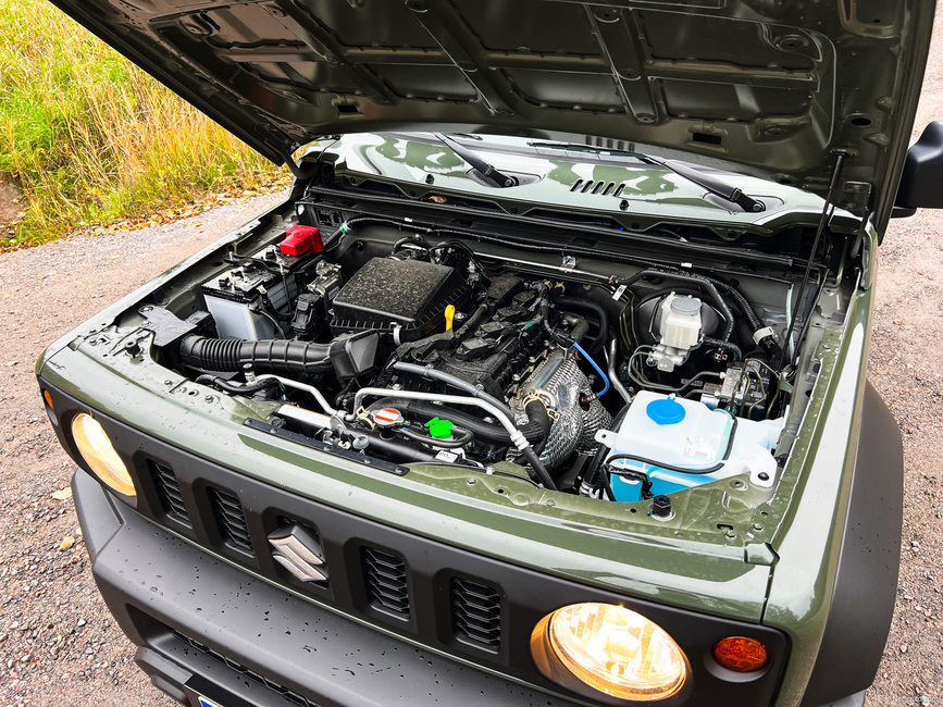 Suzukin reippaat päästöt johtuvat hyvin perinteisestä moottoriteknologiasta, joka perustuu 1,5-litraiseen vapaasti hengittävään bensiinimoottoriin. Mylly tuottaa 105 hevosvoimaa ja 130 Nm, jotka jaksavat viedä autoa maastossa hienosti, mutta maantiellä kyyti ei ole sieltä ripeimmästä päästä.