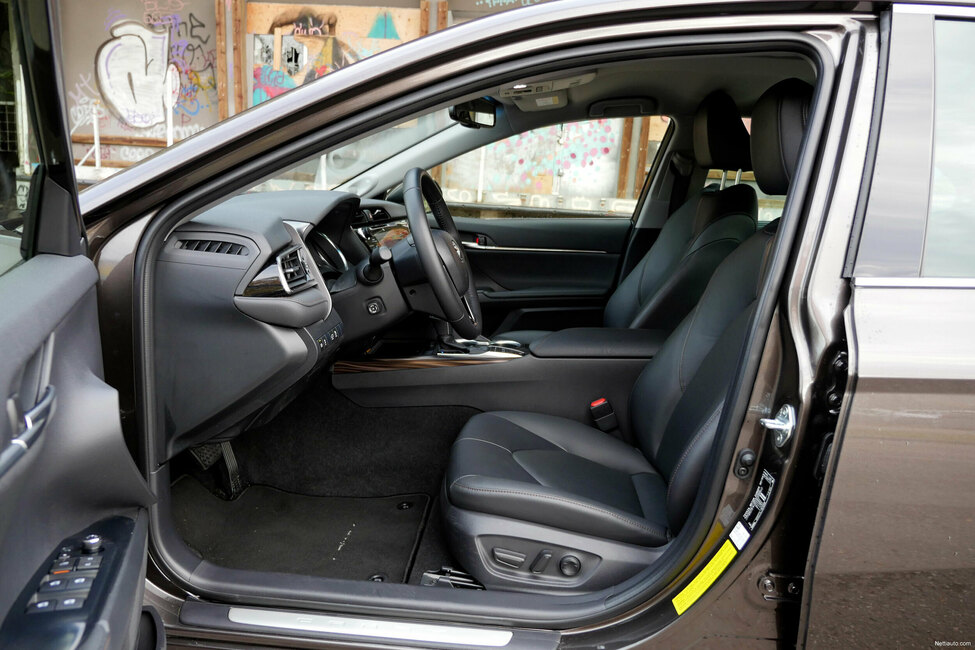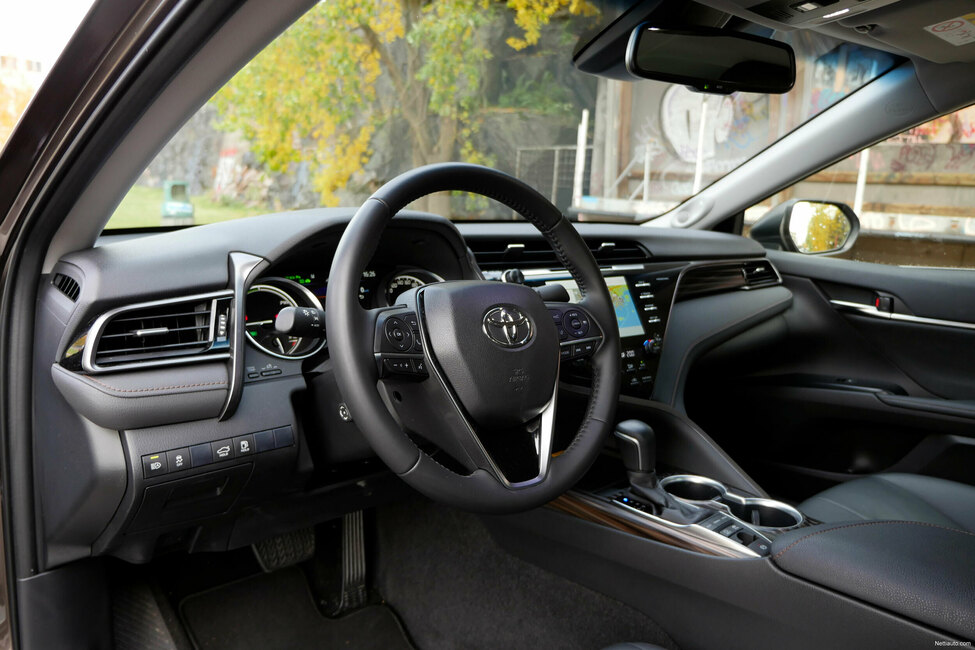 Toyota Camry on tyylikäs melkein 4,9 metrin mittainen iso sedan. Autossa on Toyotaksi yllättävän persoonallinen ja laadukkaan oloinen ohjaamo, joka tarjoaa kuskille hyvän ergonomian. Istuimen sähköllä säätyvästä ristiseläntuesta voi antaa erityiskiitoksen.
