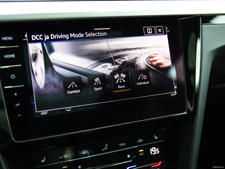Kiinnostavin ajotila on luonnollisesti R eli race. Tuolloin vaihteisto ja voimansiirto ovat tiukimmillaan ja putkistossa olevat läpät avartuvat. Äänimaailma muuttuu raaemmaksi ja kovissa kiihdytyksissä Arteon R mylvii ilmoille asialliset pörinät. Mitenkään liian kovaksi äänimaailma ei kuitenkaan äidy.