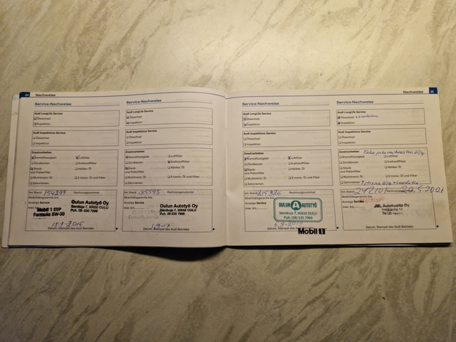 Huollot on suoritettu ajallaan ja korjailtu tietenkin aina tarpeen vaatiessa. Auto on pidetty siistinä niin sisältä että päältä. Ainahan toki kauneusvirheitä löytyy kohta 20 vuotta vanhasta autosta.
