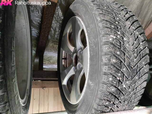 Kahdet renkaat alumiinivanteilla, talveksi nastat.