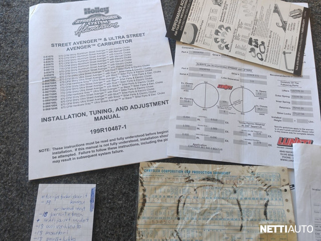 Vaihteisto: Juuri remontoitu vakio laatikko + mukaan tulee "uusi" TCI Street Fighter 727 -automaatti , turbiini (2400 rpm stall).