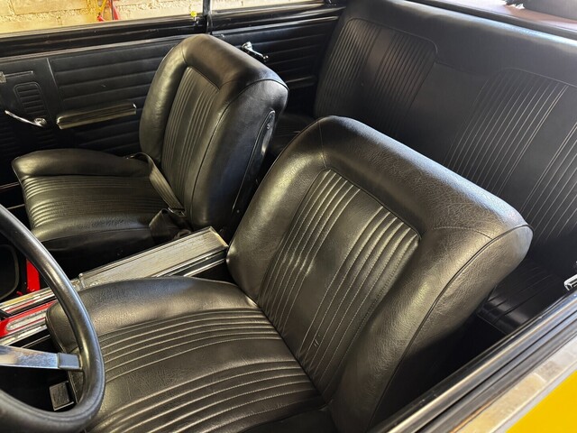 Sisältä erittäin siistissä ja alkuperäistä vastaavassa kunnossa (löytyy myös orkkis ruori). Ovipahvit ja takapenkki alkuperäiset. Etupenkit muotoiltu alkuperäisen mallin mukaan tukevimmiksi ja mukavammiksi. Irroitettava MonoFlex vetokoukku.