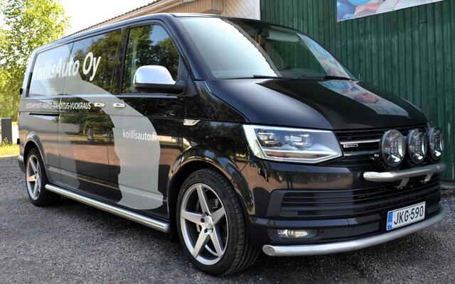 Alvillinen pitkä neliveto Transporter. Varusteina mm. webasto kauko-ohjauksella, ledi ajovalot, vetokoukku, vakionopeudensäädin, alustasarja.