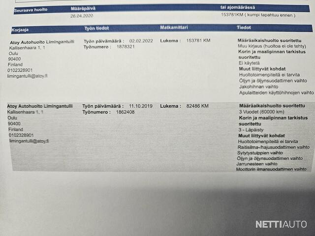 - Huoltokirja (Sähköinen) jakohihna vaihdettu 153tkm vuonna 2022