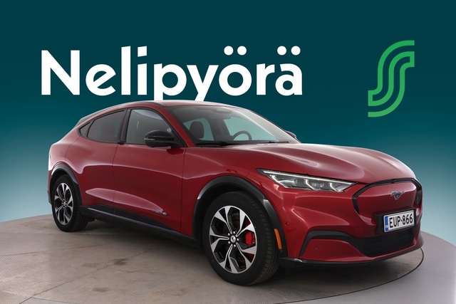 Mustang Mach-E -logo auton kyljessä (lisäksi "4" jos neliveto ja "X" jos extended range akulla