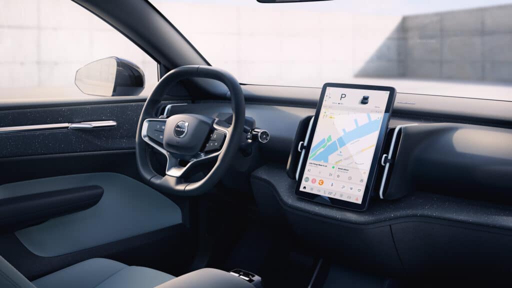 Keskellä on yksi suuri 12,3 tuuman näyttö, josta kuljettaja voi helposti seurata ajodataa. Auto tarjoaa kaikki Googlen palvelut (kartat, Play-kauppa, Assistant). EX30:n laadukas äänimaailma on syntynyt yhteistyössä Harman Kardonin kanssa.