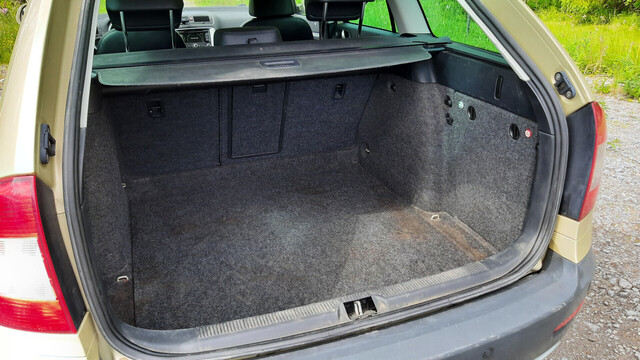 • tavaratilan suojaverho, verkkoväliseinä ja pitkä säilytyslokero takapenkin niskatukien takana poikittain sekä tilavat sivusäilytys lokerot tavaratilassa