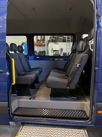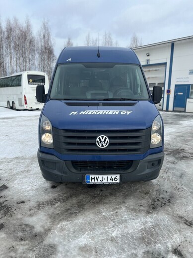 EURO6 tekniikalla Extra pitkä 1+8 Crafter hyvillä kilometreillä ja luotettavalla manuaalilaatikolla.